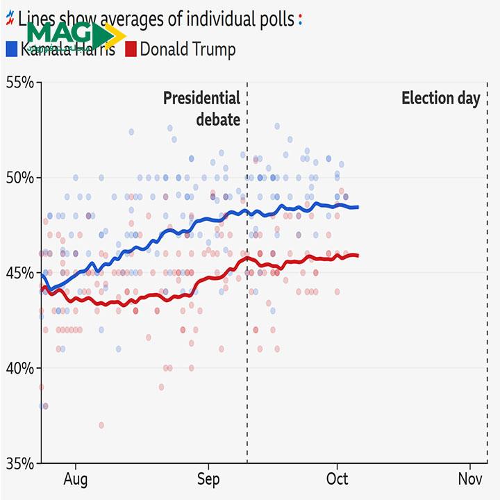 با نزدیک شدن به روز انتخابات، ما پیگیر نظرسنجیها خواهیم بود تا ببینیم کمپینهای انتخاباتی چه تاثیری بر این رقابت حساس برای ورود به کاخ سفید خواهد داشت.