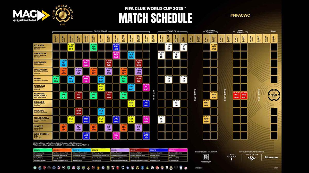 جام باشگاه های جهان ۲۰۲۵ با یک برنامه فشرده و هیجانانگیز برگزار میشود که از مرحله گروهی آغاز و به مراحل حذفی پرفشار منتهی میشود.