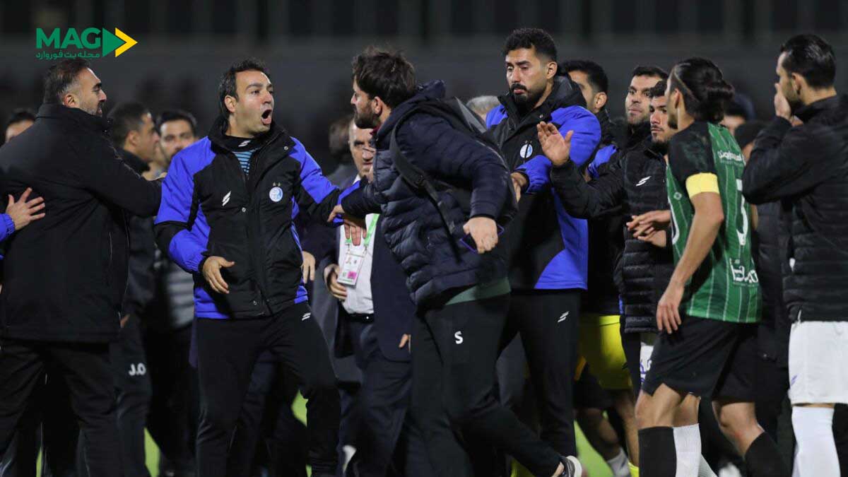 آقا، این حرکت دیگه تیر خلاص بود! عباس آقایی دستیار رحمتی از عصبانیت قرمز شد و بقیه اعضای کادر دو تیم هم مثل دومینو ریختن وسط! دیگه فقط ساپینتو و رحمتی نبودن، یه جنگ تمامعیار گروهی بود! انگار همه قرار بود عقدههاشون از اول فصل رو سر هم خالی کنن!