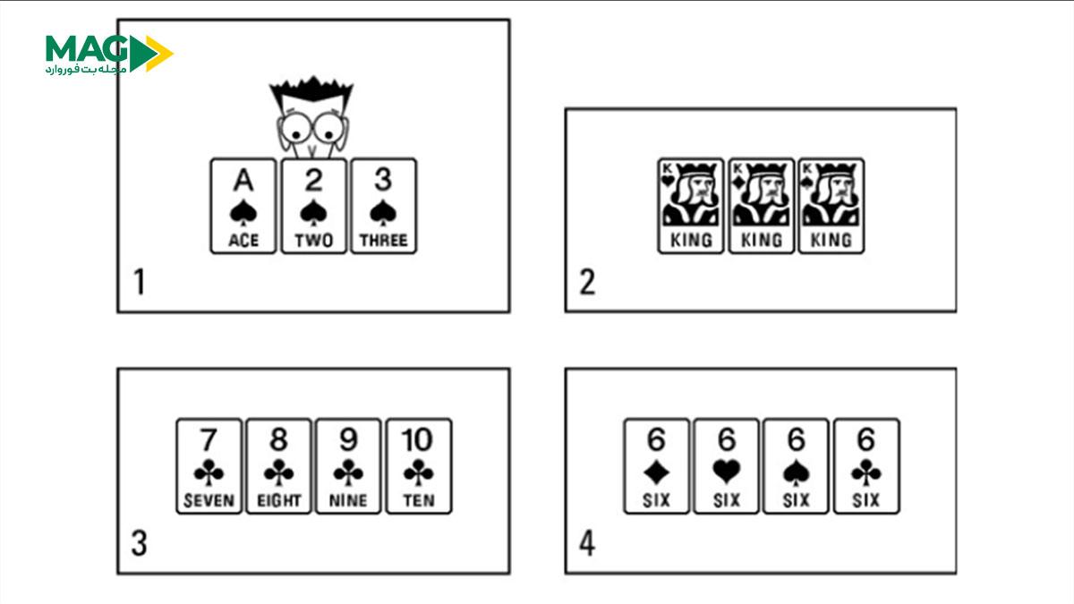 ردیفها(Runs) : دستی با سه یا چهار کارت متوالی از یک خال است.