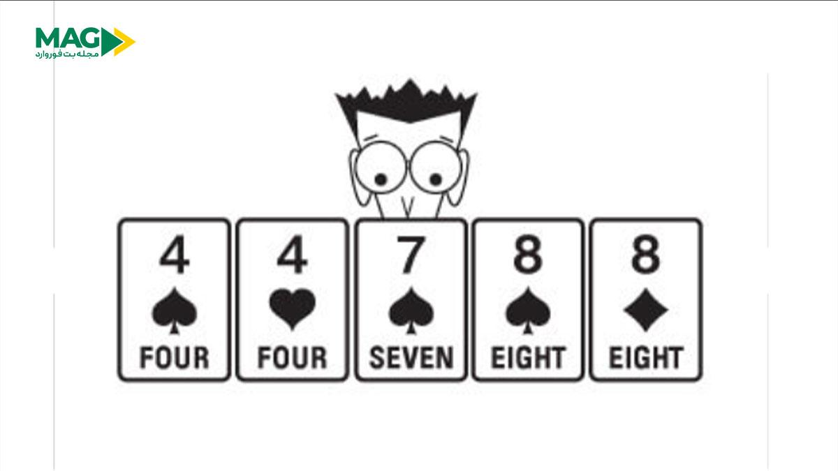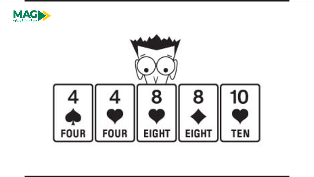 مشکل رایج دیگر این است که بدانید چه زمانی باید یک جفت کارت را نگه دارید تا شانس خود را در جای دیگری افزایش دهید. مثلا تصور کنید که مجبورید از یک مجموعه مثل شکل زیر، یکی از کارتها را دور بیندازید.