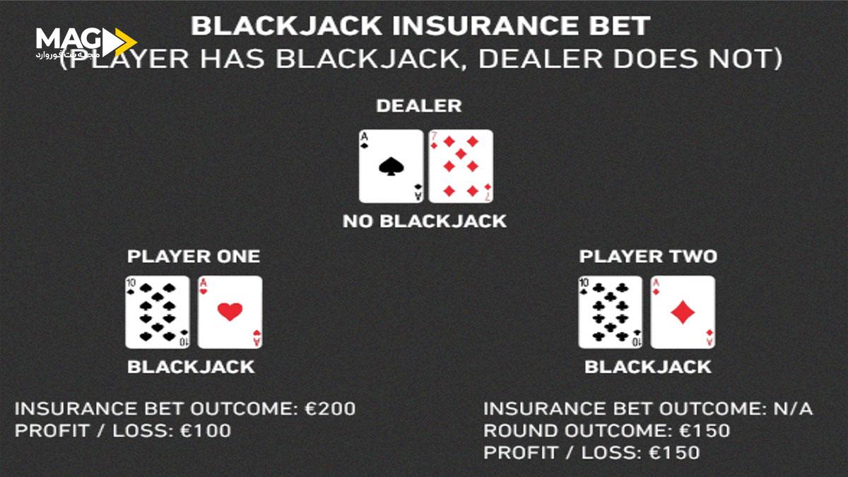 - این شرط تنها زمانی ارائه میشود که بازیکن بلکجک شده باشد و کارت رو شده دیلر آس باشد.