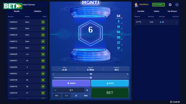 اجازه دهید که کار را برایتان سخت نکنیم زیرا بازی مونتی بسیار آسان است. در واقع اگر بازی انفجار را بلد باشید یا نباشید برای یادگیری مونتی تفاوتی نمیکند زیرا پروسه بازی بهسادگی هرچه تمامتر اجرا میشود. در واقع بازی مونتی شامل یک نمودار و یک ضریبی است که به صورت صعودی پس از شروع بازی بالا میرود و شما به صورت حدودی پیشبینی میکنید که این ضریب از مقدار تعیین شده توسط شما بیشتر میشود یا کمتر.