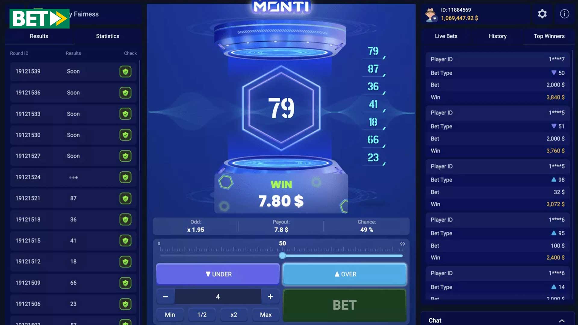در بازی مونتی مقدار ضرایب به انتخاب شما بستگی دارد و با توجه به پیشبینی شما این ضرایب به صورت متغیر تعیین میشوند. هر چقدر بازه انتخابی شما محدودتر باشد به دلیل ریسکی که متحمل میشوید ضریب شما بیشتر و هر چقدر بازه انتخابی شما شامل اعداد زیادتری شود طبیعتاً به دلیل شرایط آسانی که برای پیشبینی خود انتخاب کردید، ضریب اختصاص داده به شما کمتر میشود.